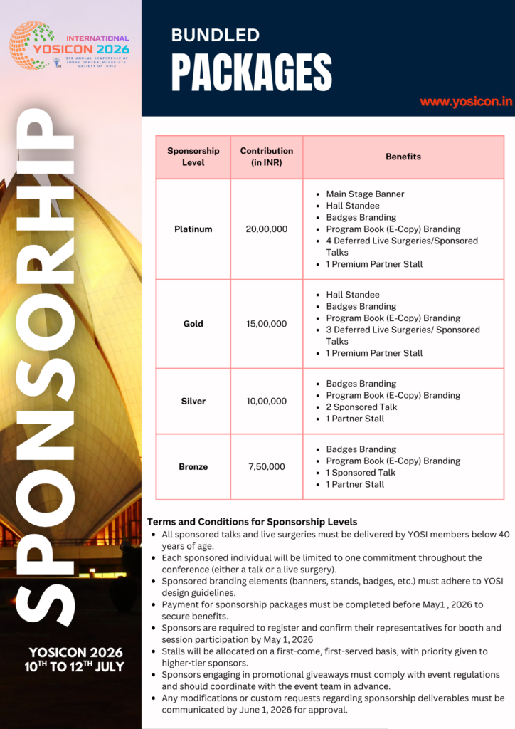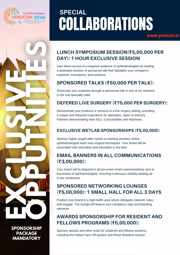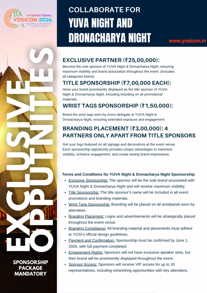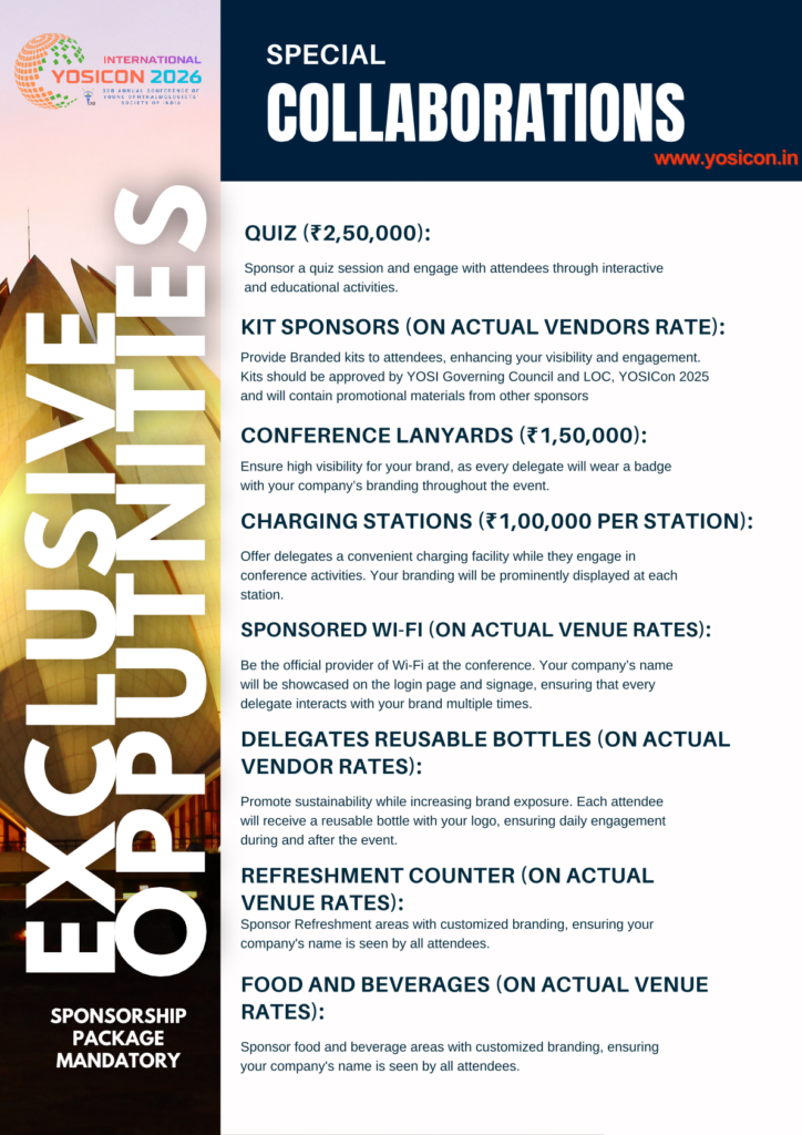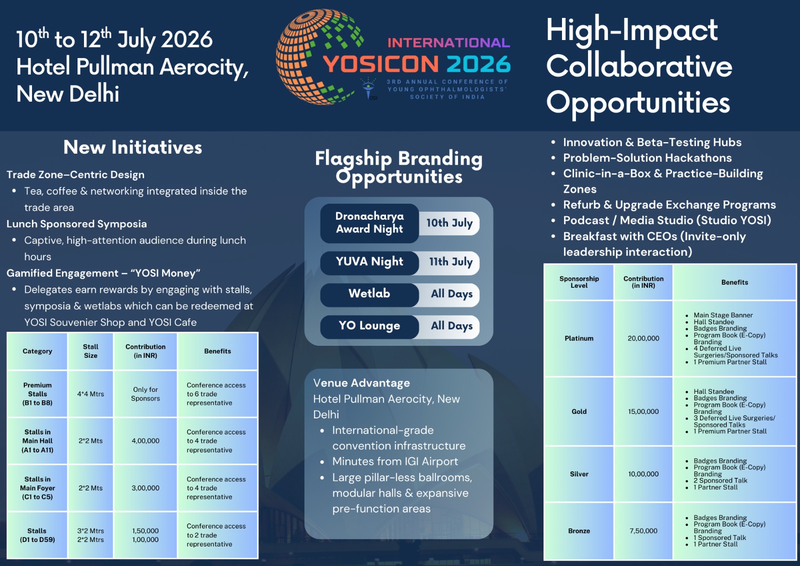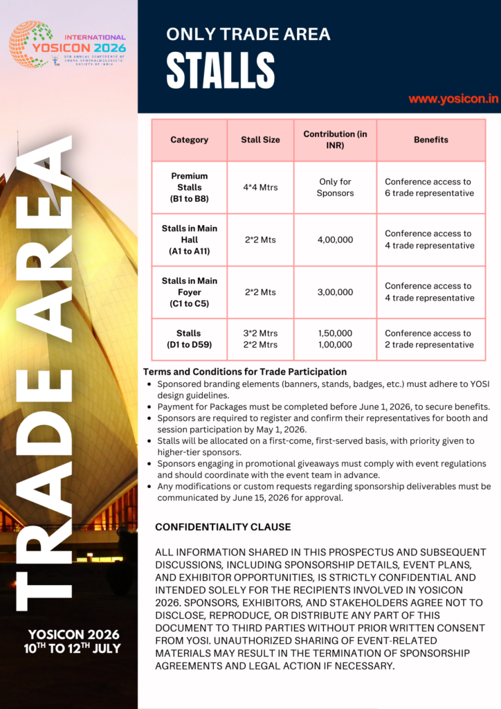 We are delighted to invite your esteemed organization to participate as a trade exhibitor at the 3rd Annual Conference of the Young Ophthalmologists Society of India (YOSI), scheduled to be held from July 10–12, 2026, at the Pullman Hotel, Aerocity, New Delhi.